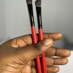Angled brush hugs cheeks contours while blending blushes, bronzers, and highlighters to sculpt and define facial features.