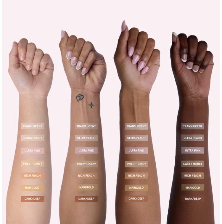 | Shades | Dark/deep, Marigold, Rich peach, Sweet honey, Ultra pink, Ultra peach, Translucent |