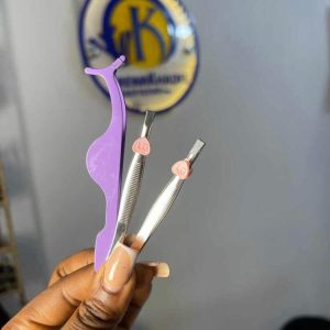 A luxurious powder puff with a satin band that flawlessly applies even coverage of loose and compact powders.