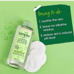 Simple Soothing Facial Toner is a light, alcohol-free toner that cleans and refreshes skin without irritation or overdrying. It contains no alcohol, dyes, artificial perfumes, or other irritants, so it’s gentle and suitable for all skin types, especially sensitive skin.